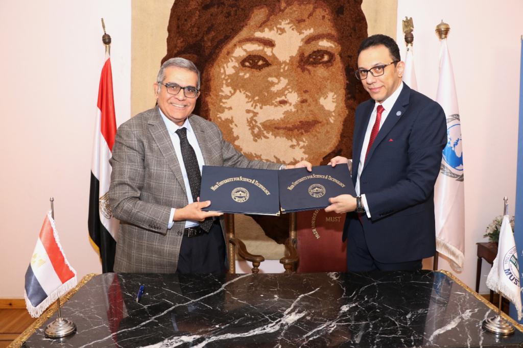 World Fund for Development and Planning - WFDP , the Special Adviser to the United Nations Economic and Social Council, headed by Ambassador Ekramy El Zaghat, signed a partnership protocol with Misr University for Science and Technology - MUST , headed by Dr. Ashraf Haidar, to implement the United Nations simulation model in Egypt. The signing of the agreement was attended by General Dr. Tareq Atia - Deputy Secretary General of MUST , Dr. Mohamed Omar - Deputy Minister of Education for teachers, and Dr. Hazem Yassin - WFDP Advisor , Dr. Mohamed Nahal - WFDP Advisor .